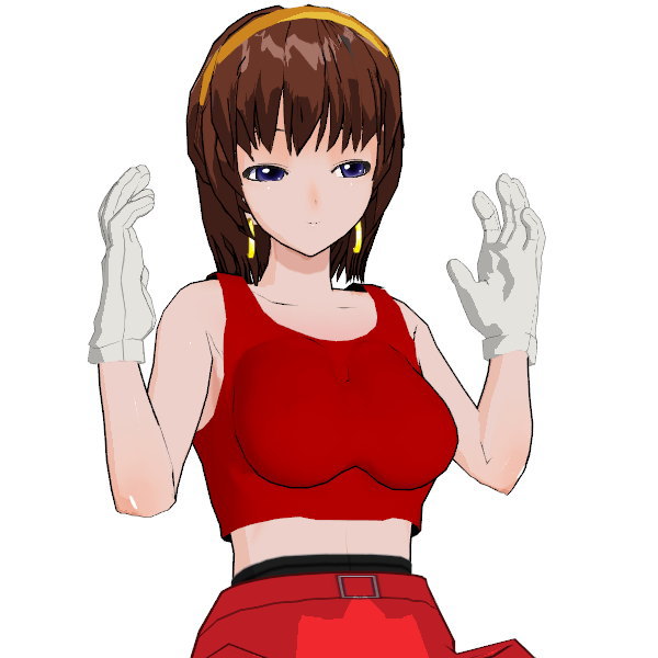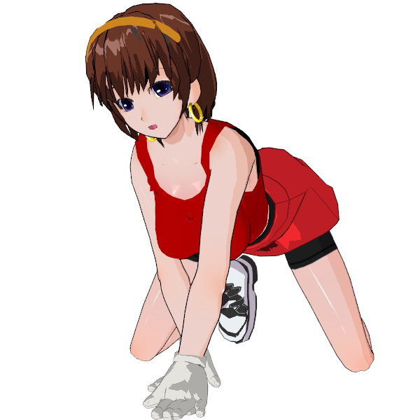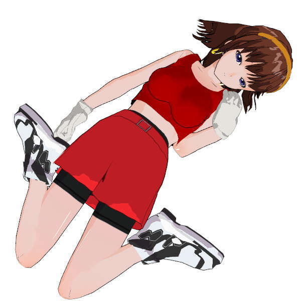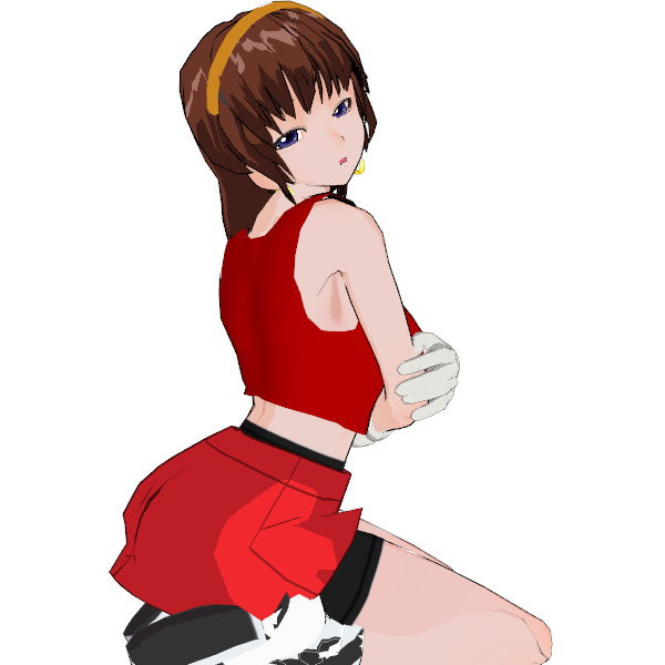 わかりやすく言うならチアガールのコス……黄色いカチューシャ、耳より少し長い茶色の髪、ノースリーブの赤いタンクトップとミニスカート。