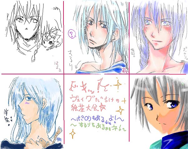 | まだまだすごいぜ! まだまだ続きます★ そして、前回のチャットで名言が生まれました。 ポロリ! 美しいという意味で使われ、深夜12時以降にはエロいという意味にもなる画期的なお言葉! さぁて!次はそんなヴェイグだよ!(無駄にハイテンション) ![]() ぽろり!!! ポロリすぎるヴェイグが沢山で、私はもうどうしていいのか分かりません先生!!! いろっぺー!いろっぺーーーーー!!!(落ち着いて!) そんな格好で宿屋にいたら、絶対不貞の輩に襲われる!間違いない! その意見に一票!!! 作画者は上左から、はるひさん、萩乃、堀凪さん。 下に行きまして左から、狗雁さん、萌芽さんです! まだ行きますまだ行きます! まだまだ萌え画像はありますよ!!! ![]() べろちゅーーーーーーー!!! 前日はティトヴェイ祭りだったのに、次の日はマオヴェイでした★ どっちもダイスキですけどね!(笑顔) サタンさんにヴェイグお付き合いしていただきました〜v その節はだいぶ引き止めて申し訳ありませんでした(笑) 最初はディープ予定だったのですが、いつの間にかべろちゅへ!萩乃の個人情報(趣味とか)が洩れているのではないかと思いました! こんなシチュダイスキ!(ニコッ!) 右の凪ティトも愛しいです(笑) まだまだぁ!(海岸イベント風に) ![]() ![]() ![]() この回で、私はシグマサレ様からサレ様のヴェイグの貸し出し許可を頂きました(笑) 流石サレ様、太っ腹です。ニコ! サタンさんの童顔ちゃんが悶えです・・・!!! ま、私の描いたべグたんはともかくとして、 両手にヴェイグという構図がひたすら羨ましいです、サレ様・・・!!! うあーんうあーん!ヴェイグめらっさ可愛いーーー!!! すみません・・・上記の作画者間違って書いてしまいました・・・。 本当にごめんなさい〜!! まだあるよ! 次はサレ祭りですよ!!! ![]() どん! 出ましたよ!7人のサレですよ・・・!!! オイシイッ!!! いろんなサレが一気に見れて、とんでもない幸福でございました・・・げへげへ★ 柊さんの「好きな子はイジメルものでしょ?」の台詞がクリーンヒット来ました・・・!!! 作画者は上左から、萩乃、柊さん、堀凪さん。 下に行きまして左から、惟智さん、pepulongさん、サタンさん、鈴音さんです。 はぁ・・・しゃあわせ・・・★ また是非・・・ご一緒いたしましょう・・・フフv |