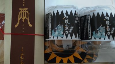 ↑お土産は切腹最中と両。