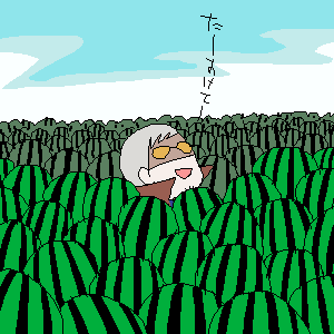 まだスイカとたたかっとる