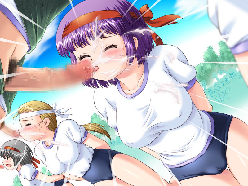 | 「うええ……なにこれ、きもちわるぅい……」 やっと目の前のおチンチンからの射精が終わったとき、羽夢さんの上半身は文字通りの精液まみれになっていました。 (うわ……ネバネバしてる……ドロドロ……いやぁ、口に入っちゃってる……変な味ぃ〜〜〜……うえ……ニオイも変……体操服に染み込んでくるぅ!……じわっと熱いよぉ〜〜〜〜) 体の中のモヤモヤも一瞬で消し飛んでしまい、生まれて初めての顔射に戸惑うばかりの羽夢さん。 紅組側スタンドからの『早く!早くゴールしてっ!』という慌てたかけ声も耳に入らないのでした…… |