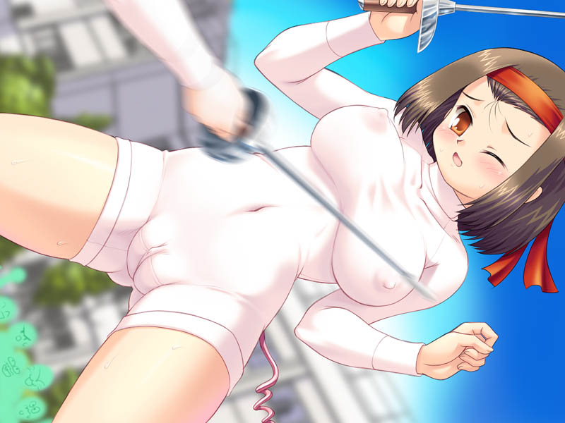 A:「おおっ!? 剣の先端が触れた瞬間、何かスパークのようなモノが水原選手の乳首に走ったぁ! これは一体!?」 B:「はいっ! 彼女たちが身につけているコスチュームは剣が触れるとその部分に<キモチイイ電流>が流れるようになっているのですッ!(ハァハァ)」 A:「なるほど、腰から出ているコードはその仕掛けのためだったのですか! ……しかし剣が身体に触れたことでこの勝負は水原選手の敗北が決定したワケですね!?」 B:「いえいえ……まだまだです!(ハァハァ)」