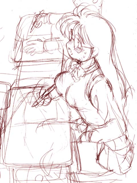 これも<キリ番>で田中美喜先生のコスプレHを描いたときのボツラフっス。