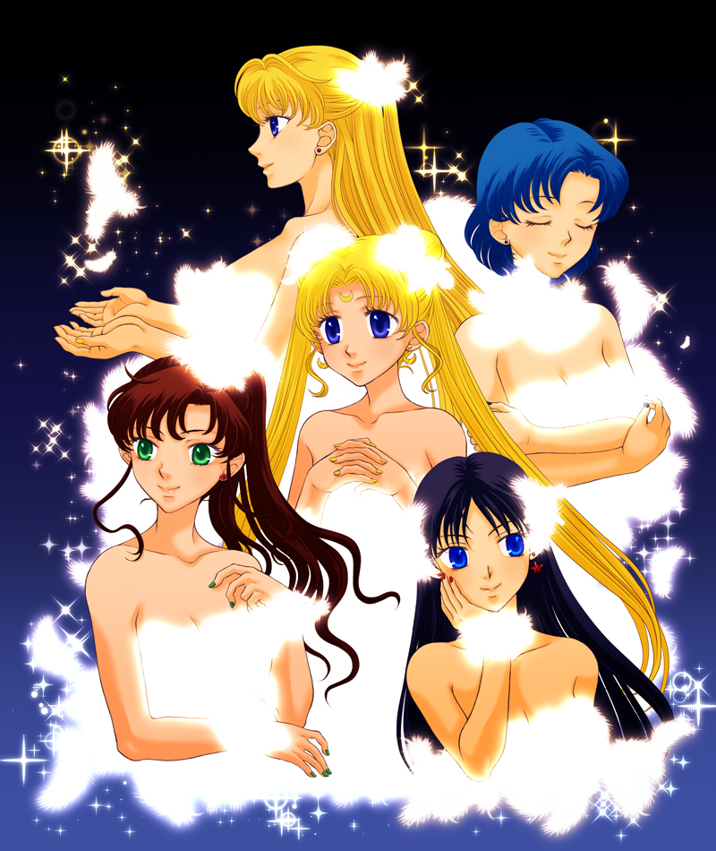セーラー戦士5人。羽根ブラシときらきらブラシが便利すぎて、意味のわからない罪悪感がありました。それなのに思ってたのと違う仕上がりになってしまいました。何かが違う…。
